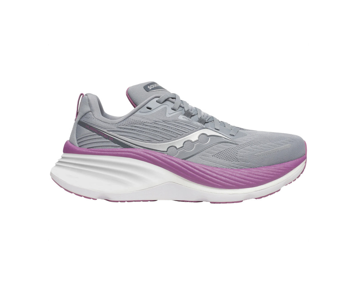 The Saucony Hurricane 24 is a highly cushioned and protective running shoe designed for runners seeking extra support during their daily training. Transformed from the ground up, the midsole features dual cushioning with highly responsive PWRRUN PB foam directly underfoot for maximum comfort and a touch of bouncy efficiency, while a broad base of PWRRUN foam surrounds and cradles your foot, offering protection with every step. Additionally, CenterPath Technology provides a stable ride thanks to its broader platform, higher sidewalls with more medial support, and a rocker shape that seamlessly guides your stride from impact to toe-off.